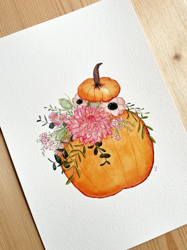 Affiche aquarelle A4 - CITROUILLE FLEURIE