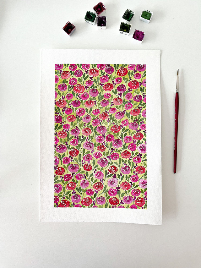 Apportez une touche de poésie et de couleur à votre intérieur avec ce motif peint à l’aquarelle.