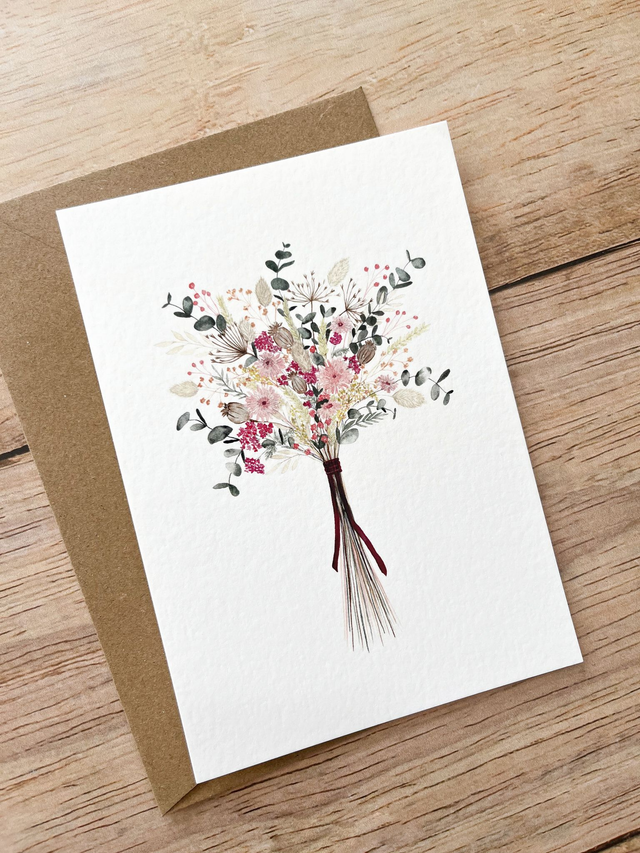 Bouquet de fleurs séchées illustré à l'aquarelle