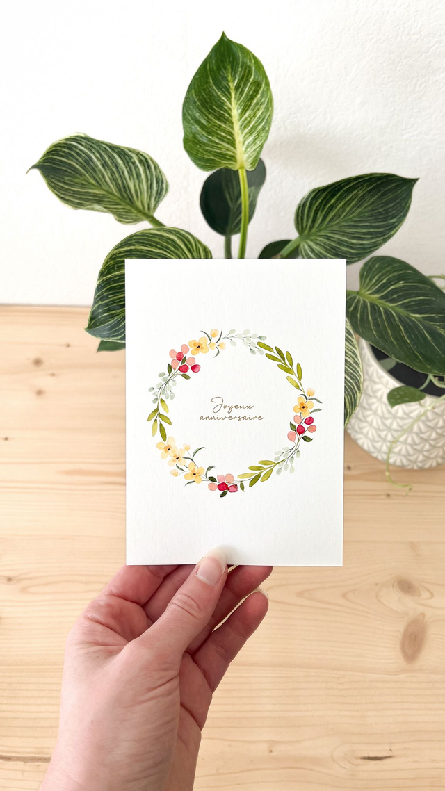 Illustration originale à l’aquarelle, numérisée et imprimée sur papier texturé 324 g/m² avec enveloppe kraft incluse.
