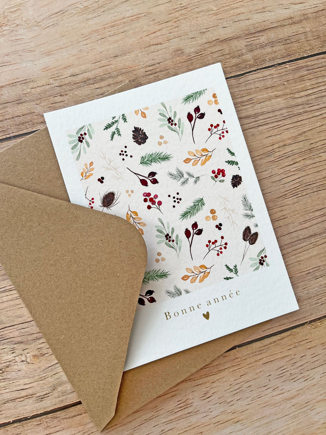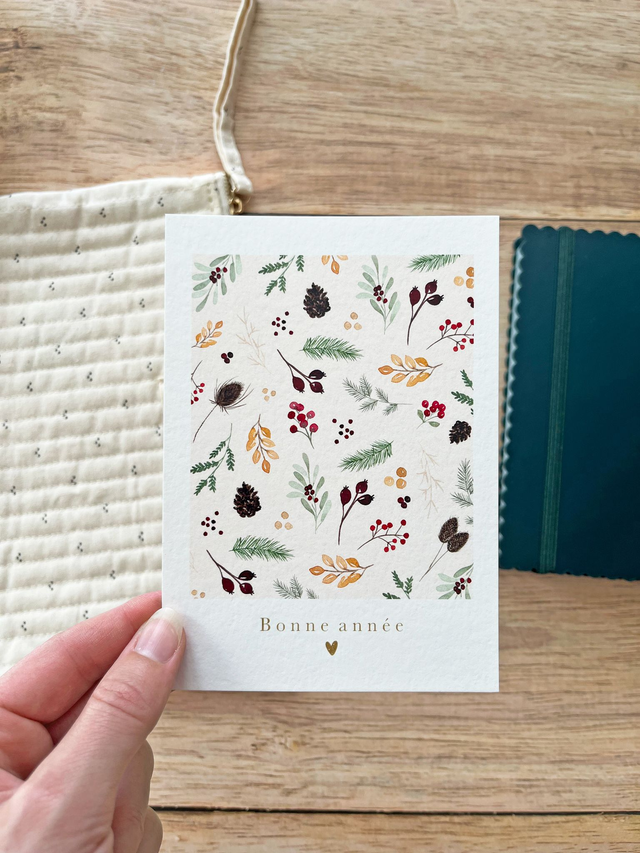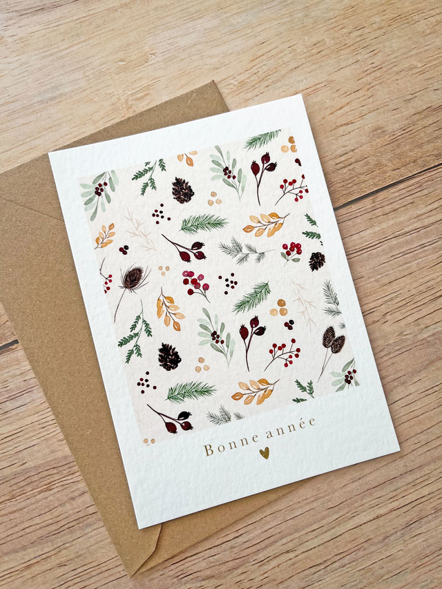 Carte BONNE ANNÉE illustrée à l'aquarelle