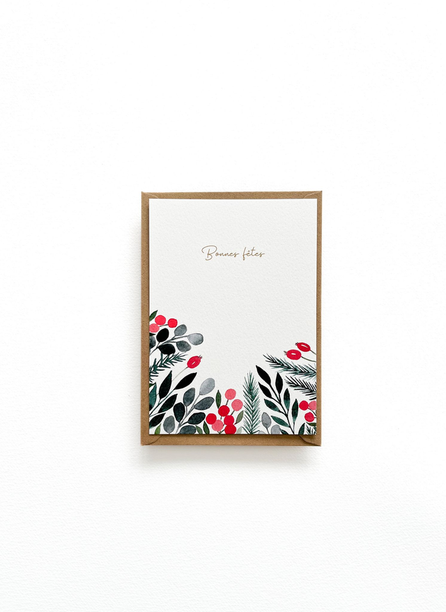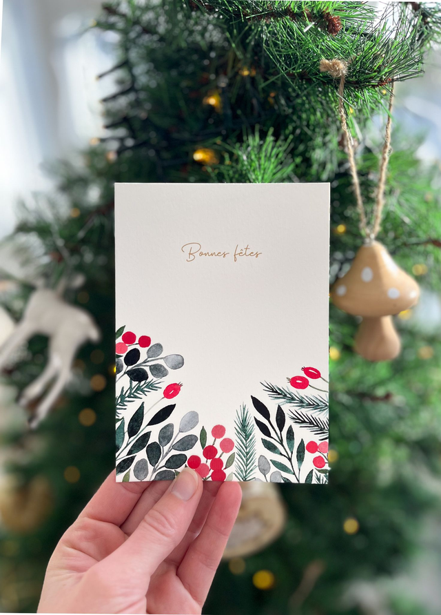 Carte postale BONNES FÊTES illustrée à l'aquarelle