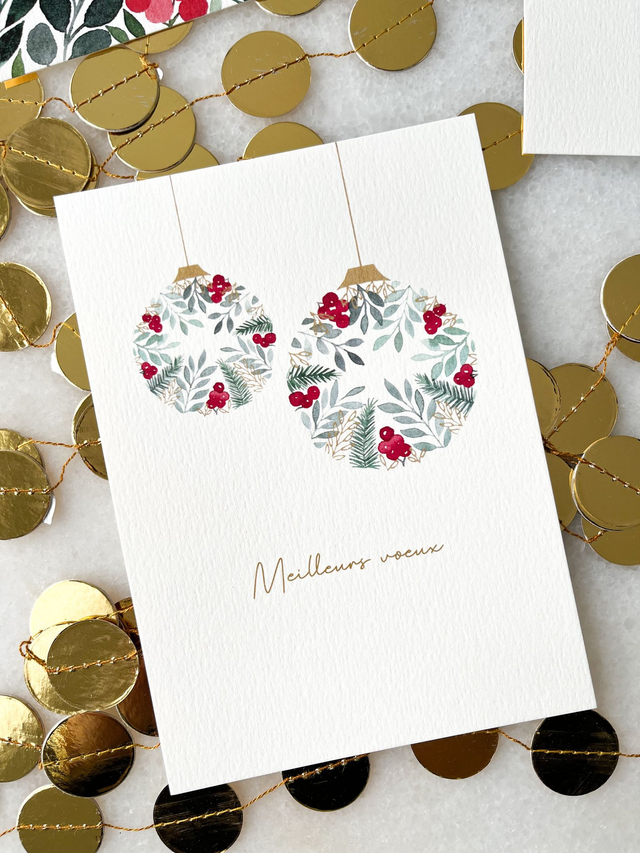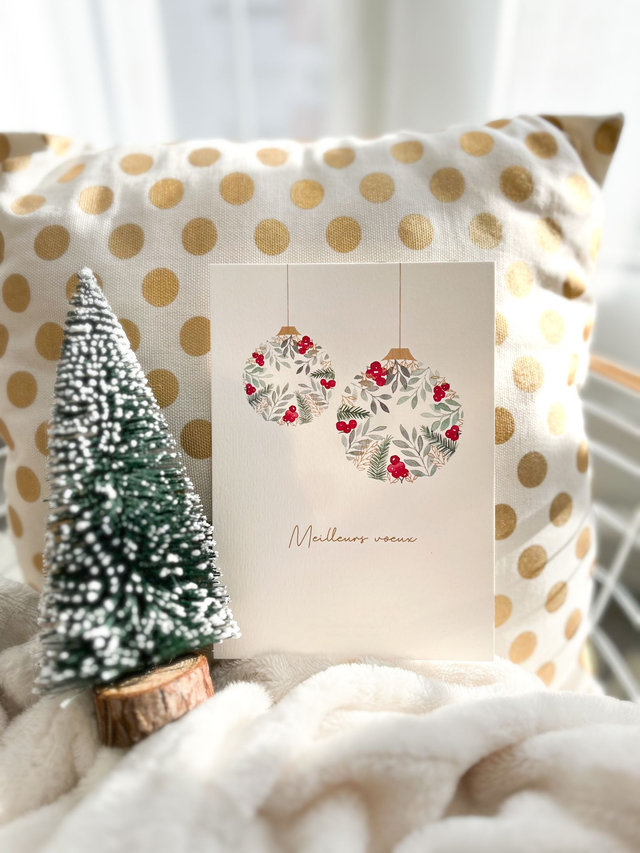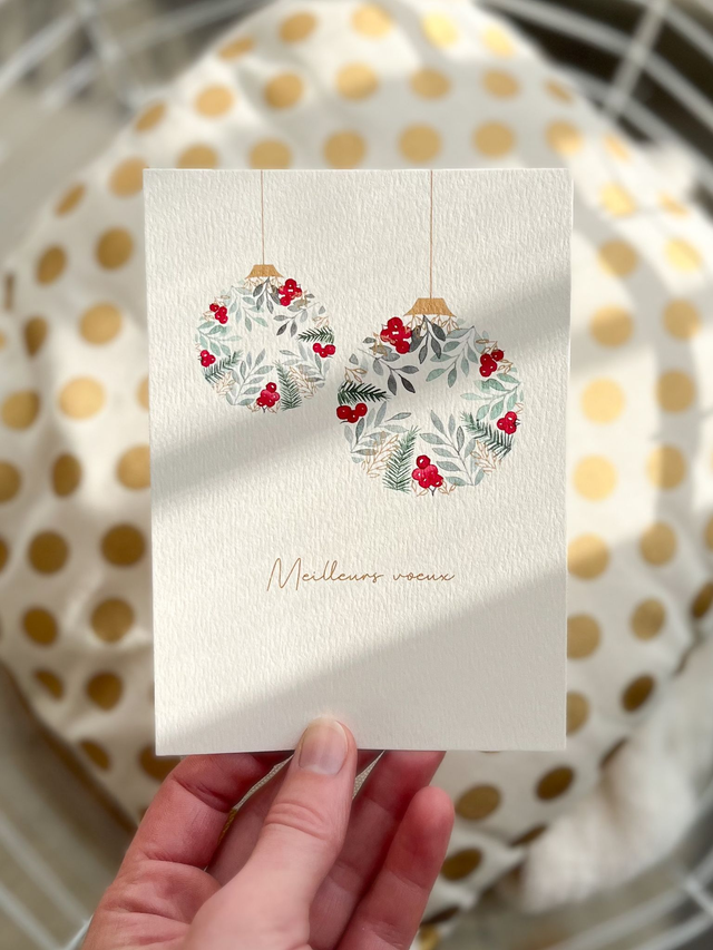 Carte postale MEILLEURS VOEUX illustrée à l'aquarelle