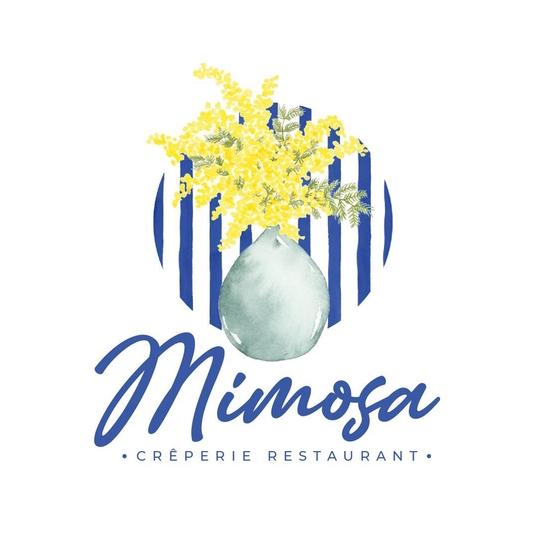 Pour le logo de la crêperie-restaurant MIMOSA SAINT-MALO Intra-Muros. Au pied des remparts, 6 rue Jacques Cartier.